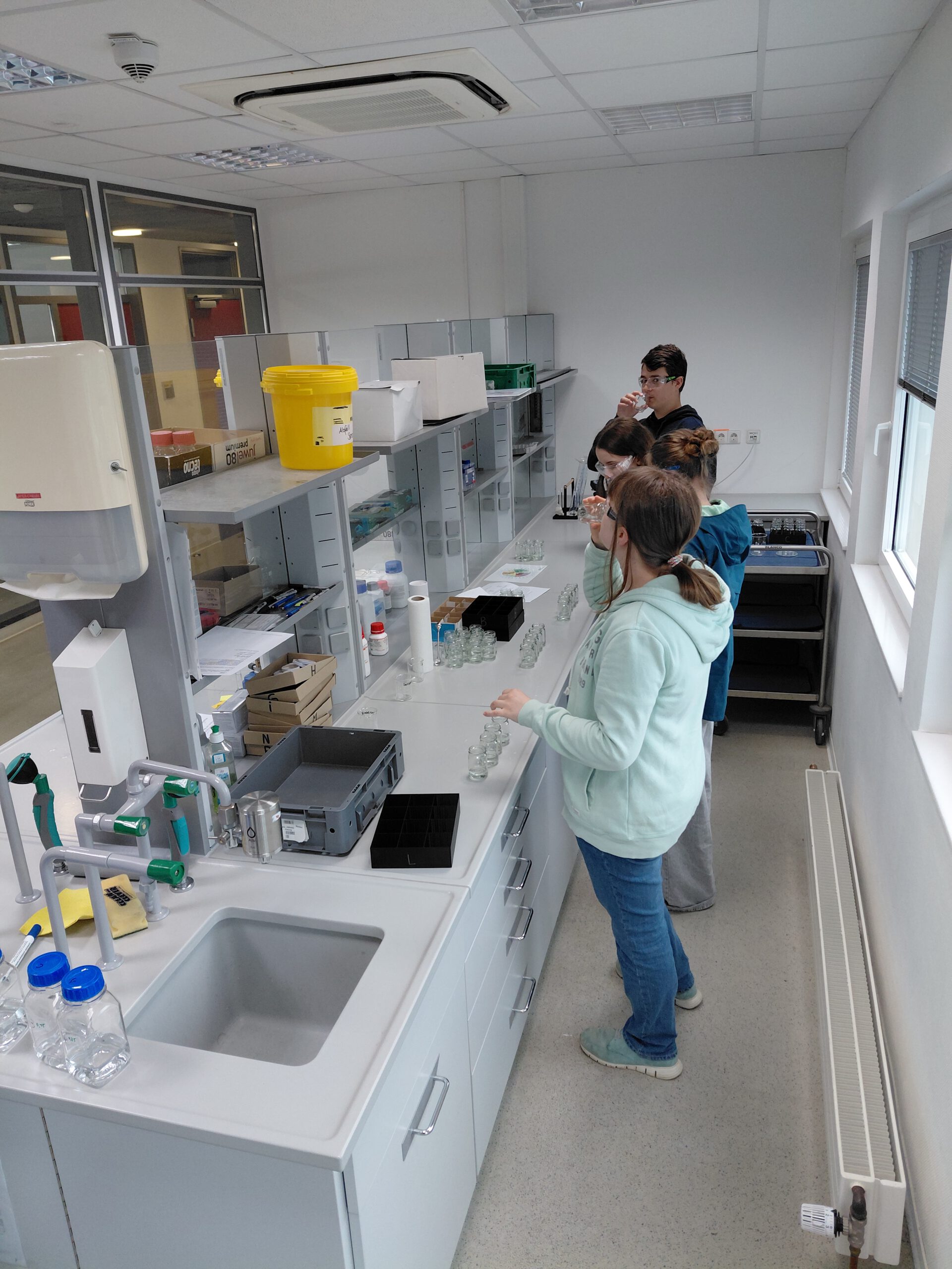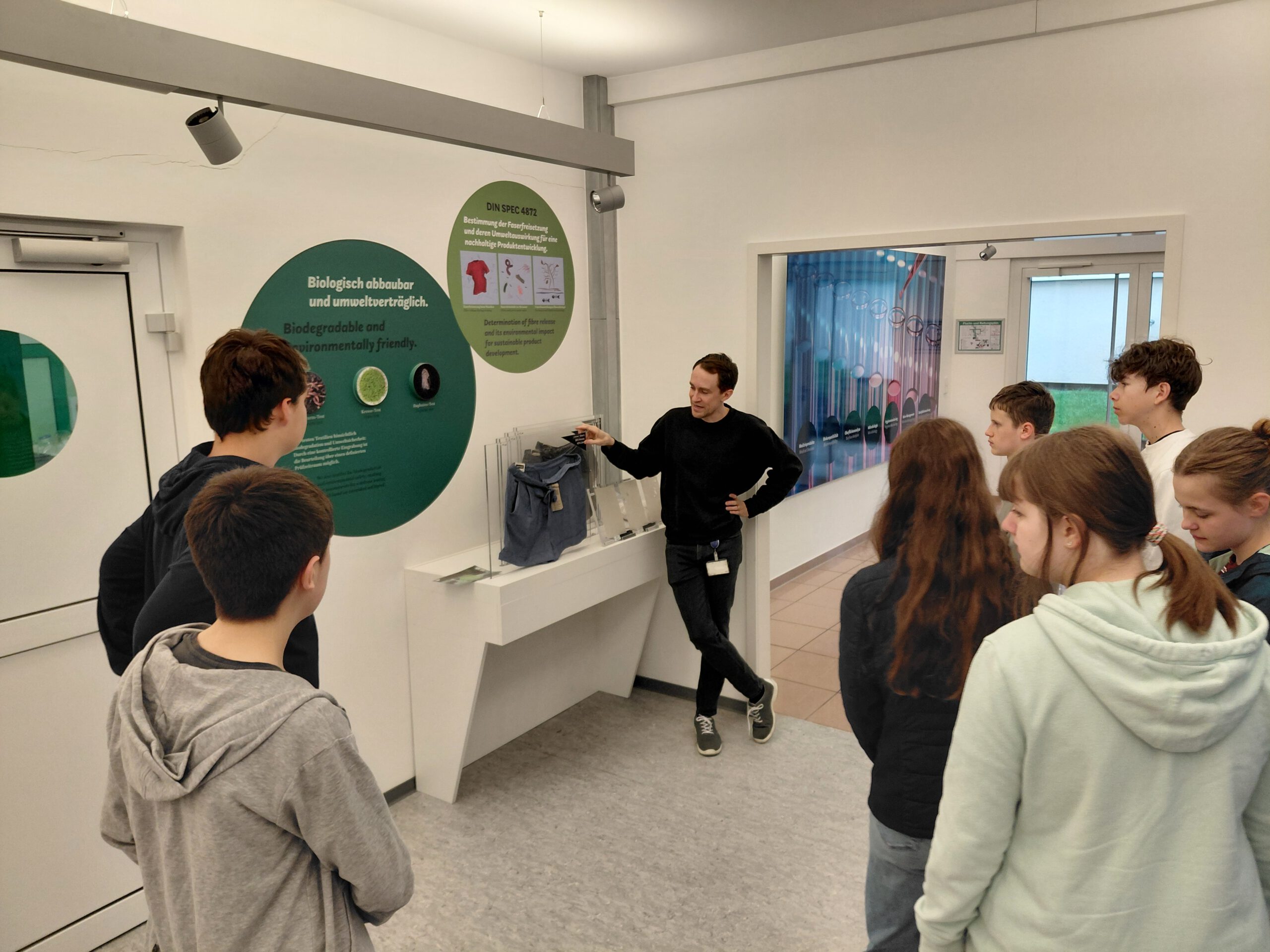 Im biomedizinischen Labor wurde unter anderem ausführlich erklärt, wie geprüft wird, ob als „Bio“ ausgezeichnete Baumwolle auch tatsächlich biologisch, also nicht genetisch verändert, angebaut wurde. Im chemischen Labor konnten sich die Schülerinnen und Schüler mithilfe unterschiedlich stark konzentrierter Zitronensäurelösungen als menschliche Geschmackssensoren kalibrieren und anhand vorbereiteter Testproben ihre „Sensorgenauigkeit“ überprüfen. Im physikalischen Labor ging es um die Abriebs- und Reisfestigkeit sowie Farbtests von Textilien.